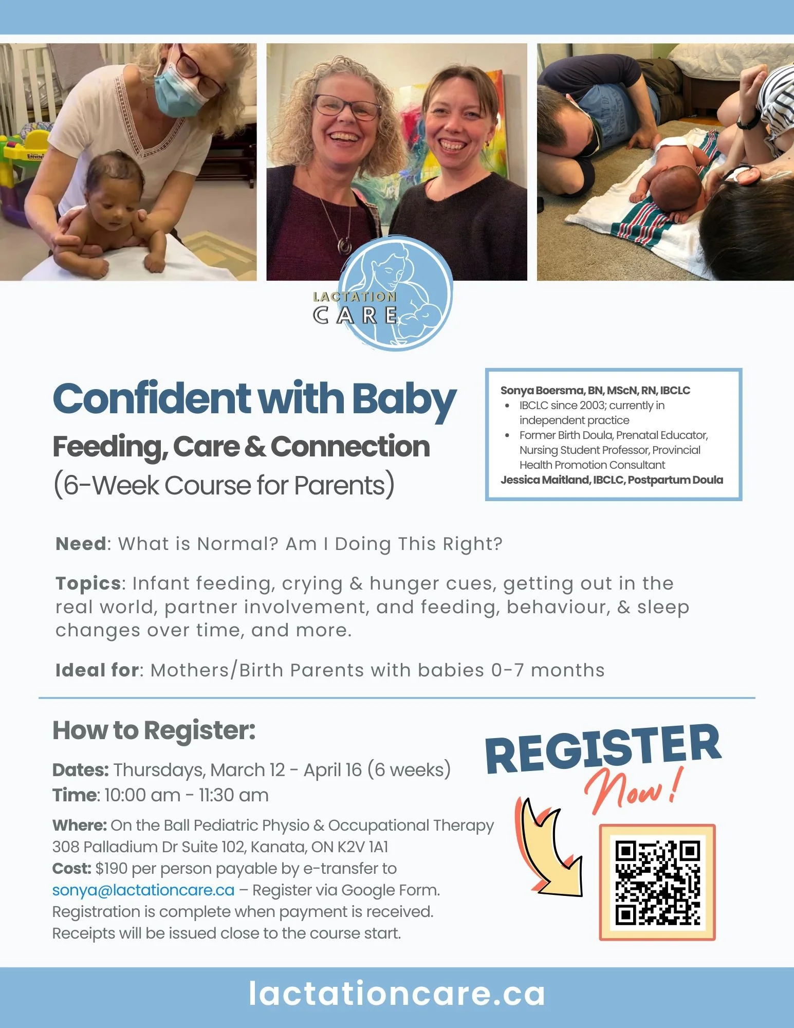 Cost: $190 per person payable by e-transfer to sonya@lactationcare.ca – Register via Google Form.